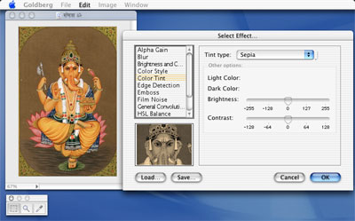 Goldberg is a freeware image and movie viewer with image editing capabilities and support for applying QuickTime and other effects.
